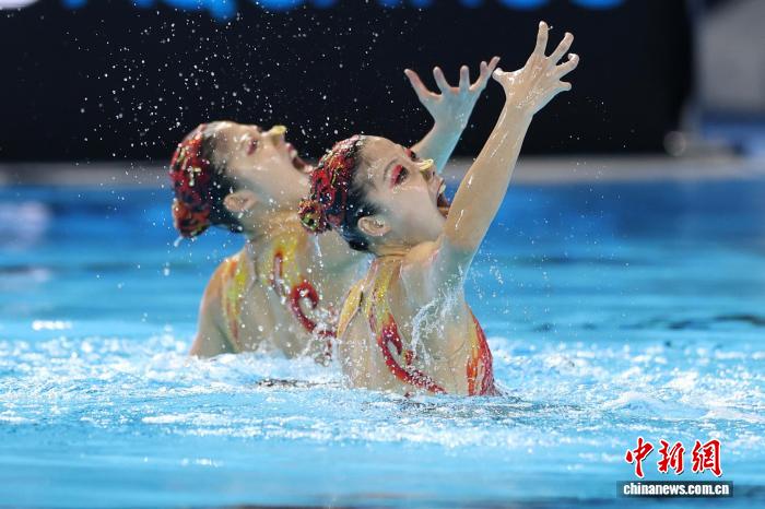 7月21日,中国比赛林·扬汉(Lin Yanhan)/林·扬琼(Lin Yanjun)在2025年世界游泳锦标赛中在新加坡举行的同步游泳技术选拔决赛中以301,4057分获得了银牌。中国新闻服务报告的摄影