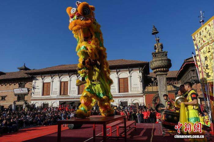 1月18日,当地时间,尼泊尔2025年旅游年的启动仪式和农历新年嘉年华在卡特曼杜谷的老城皇家宫殿广场举行。照片:中国新闻服务记者Cui Nan