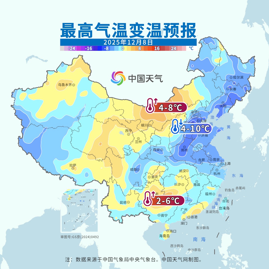 看来下周又要迎来寒流了! 10日至13日,我国大部分地区气温通常下降6至10摄氏度,部分地方可达16摄氏度左右。多地气温将创今年年底以来最低。气温下降恰逢一个月来最大的雨雪天气,这可能会给中国北方的许多地区带来冬季的第一场雪。如今,冷气流东移、南移,给宁夏、内蒙古、陕西北部、山西北部、河北北部、辽宁、吉林、黑龙江等省区带来寒冷天气。黄河以南多地气温依然较高,江南南部、华南大部地区气温超过20度。明天,这股冷锋将继续给中东部地区带来寒冷天气。黄淮中北部、华北、东北及内陆中东部蒙古将降温4至6度,局地气温将下降8摄氏度以上。但由于强度偏弱,虽然对前期明显高温有所小幅纠正,但整体温暖态势难以扭转。下周初,我国大部分地区的气温将远高于常年同期水平。下周后半段气温将发生变化。随着冷空气加强,预计10日至13日日本自西向东大部分地区将受到寒潮影响。我国大部分地区气温预计下降6至10摄氏度。预计新疆北部、江南西北部和部分西部地区气温将降至12℃至14℃,局地最高可达16℃左右。北方部分地区将出现4~6级偏北风,阵风7~9级。气温降至12℃至13℃,华北至长江中下游多地气温预计将创下半年以来最低水平,0℃最低气温线预计将南移至长江中下游地区。这次寒流不仅会降低气温,还会带来大范围的雨雪天气。 10日之前,我国总体维持分散雨雪、空气干燥的天气格局。降雪主要集中在新疆、西藏、青海、内蒙古、黑龙江、吉林等地,贵州、四川、重庆也有小雨。与寒潮来临同时,受水汽和冷热天气的双重影响,11日至13日中东部地区大面积有雨雪天气。这将是一个月来最大的雨雪。北部地区我国经历了今年冬天以来最大的一次降雪,中国北方的许多地区可能会迎来入冬的第一场雪。西北、华北、黄淮、东北地区降雪小雨转雪,局地大雪、暴雪。降雨主要集中在南方,四川盆地至江汉江南及华南地区有小到中雨,广西中部、广东北部局地大雨。